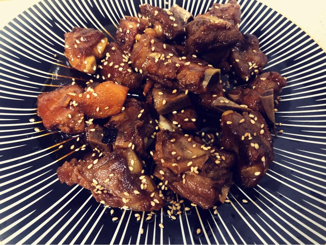 晚餐:韭菜炒蛋,干煎银鳕鱼,红烧排骨,花菜腊肉