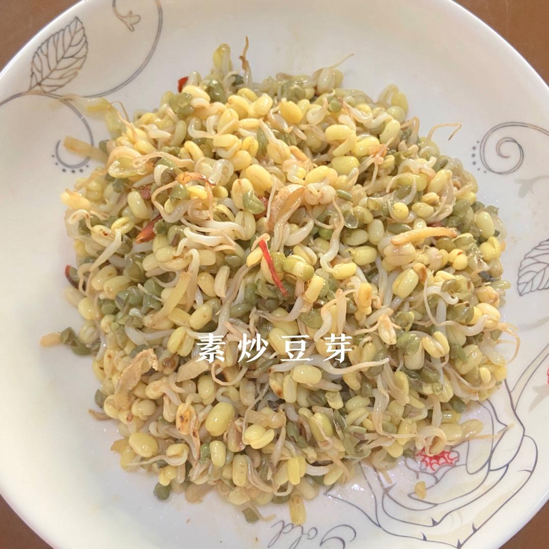 1.用自己生的豆芽炒的,纠结用不用去皮,结果没去,有点苦