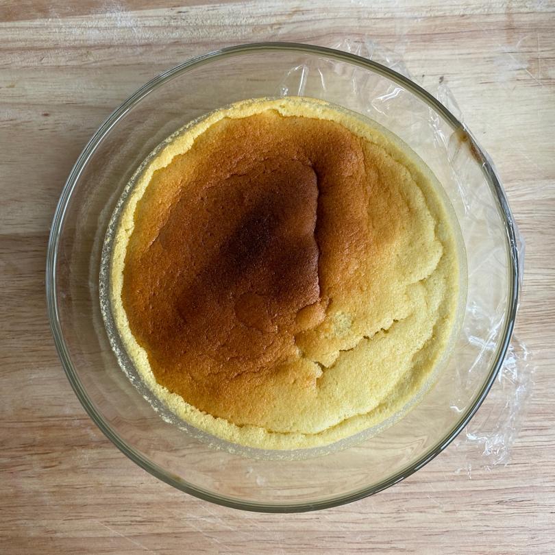 小小的烤箱 开始温度高了,离上管也近,有点回缩,等待冷藏一晚。二刷巧克力味,低筋粉换成全麦粉,也很可哦。