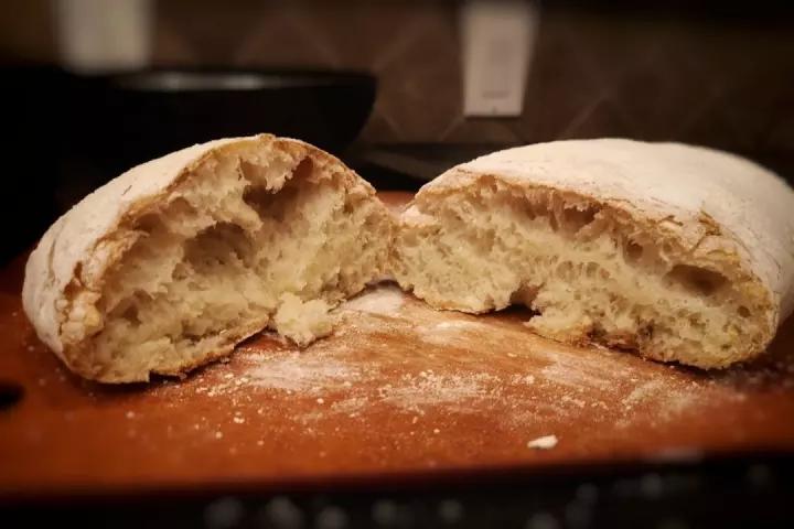 没有冷发酵 也没有用高筋粉 表面面粉还撒多了 但外面脆脆的 里面软软的 和外面买的一样一样的 开心