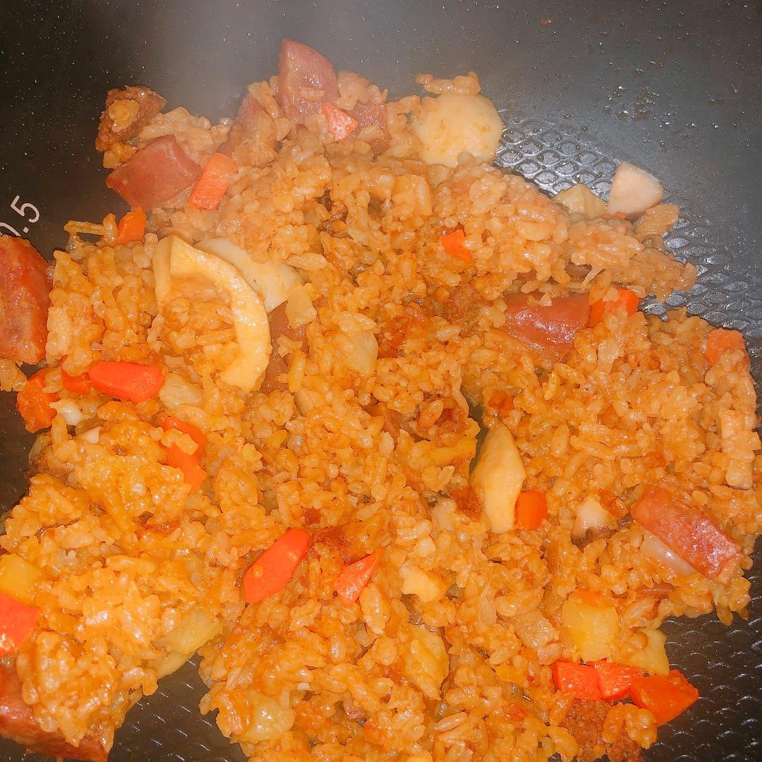这个就比较简单了,包菜手撕,大火炒起,来点囤的小炒肉,撒点干辣椒就好了。要不说囤点小炒肉...