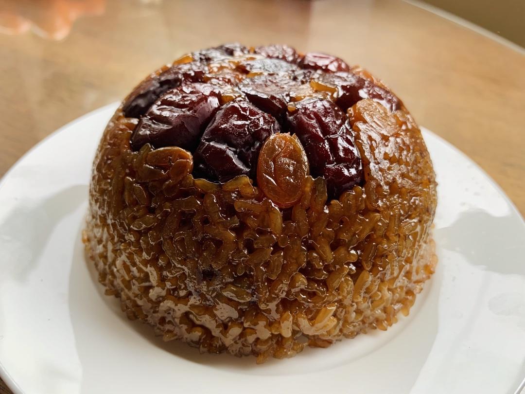 简易版红糖八宝饭,碗里刷了一遍黄油(我做的八宝饭就这点油份,极少油),之后将红枣、葡萄干、...