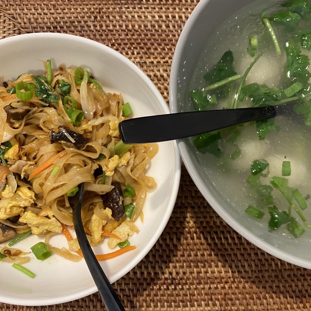 炒鱼面和鱼丸汤