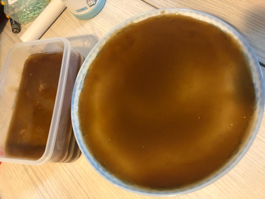 刚蒸出来还没吃,没有大蒸盘,分了两份,生熟粉第一次操作,不小心弄稠了,所以黄浆的流动性有点差,整出来颜色不均匀,减了一点...