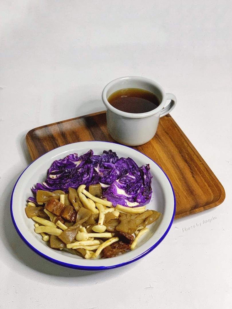 晚餐【海鲜菇酱油肉炒魔芋➕烤紫甘蓝➕...