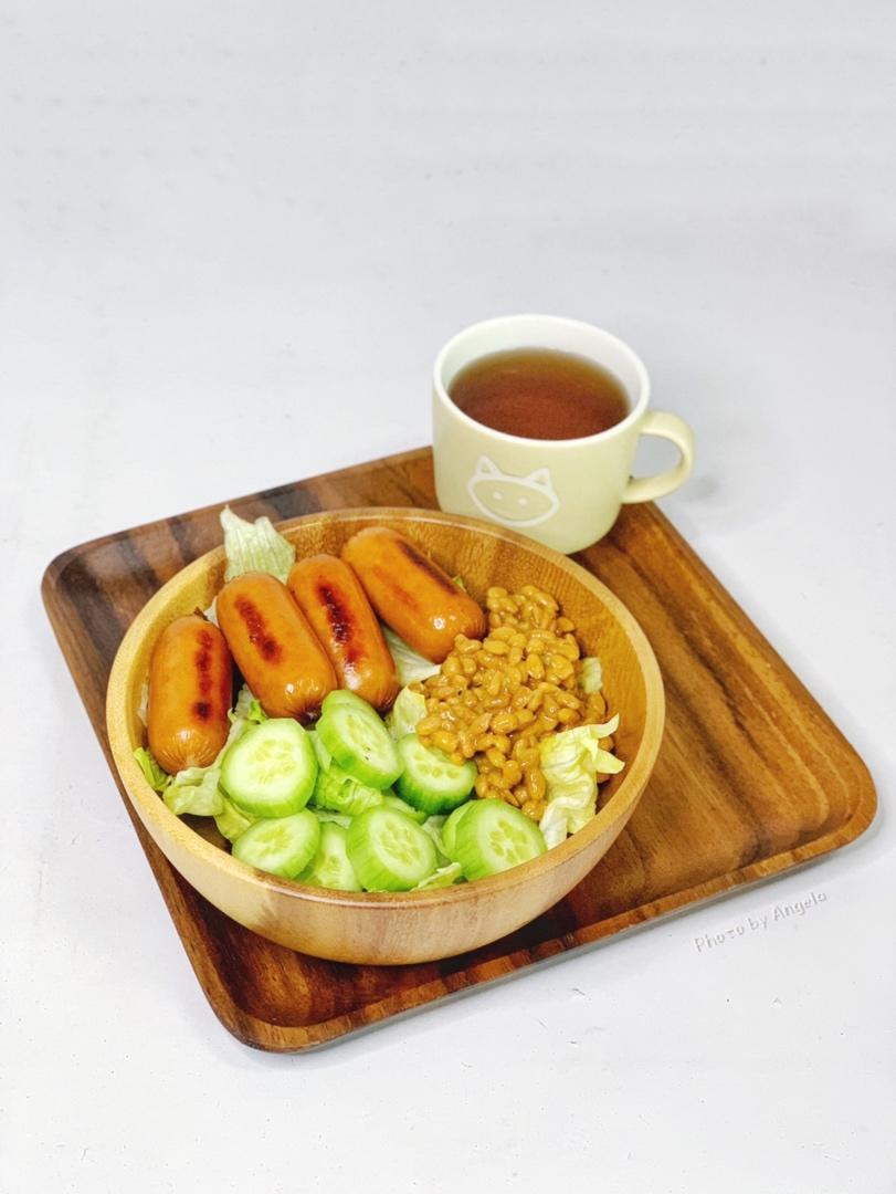 午餐【无淀粉鸡肉肠➕纳豆➕黄瓜🥒➕生...