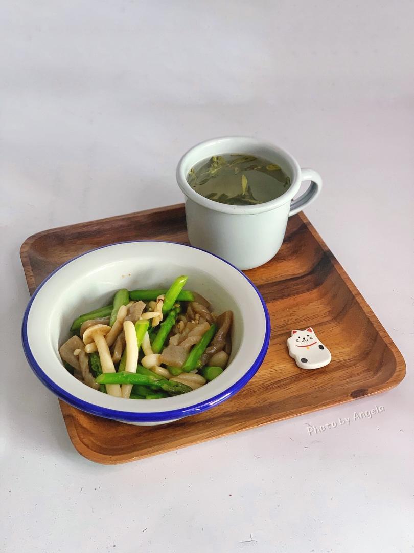 午餐【芦笋海鲜菇炒魔芋➕桂花龙井】