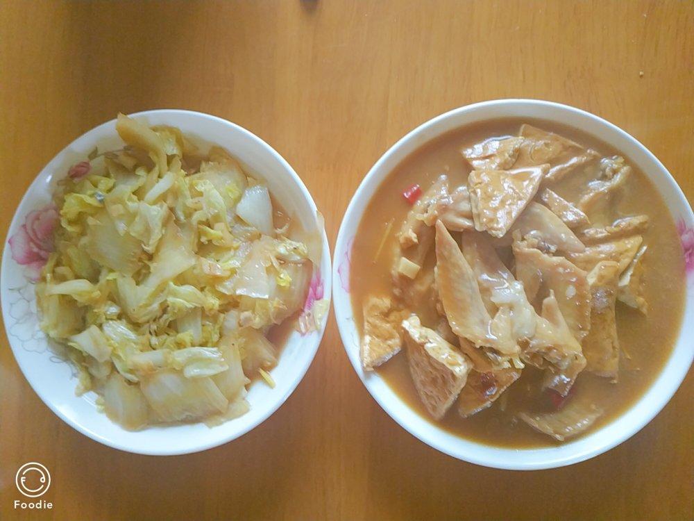 煲鸡翅豆腐,醋溜白菜,味道超好。鸡翅煲里面还加了一根年糕,但是加太早了,最后年糕都粘在砂锅上面,洗了好久#午餐•2020...