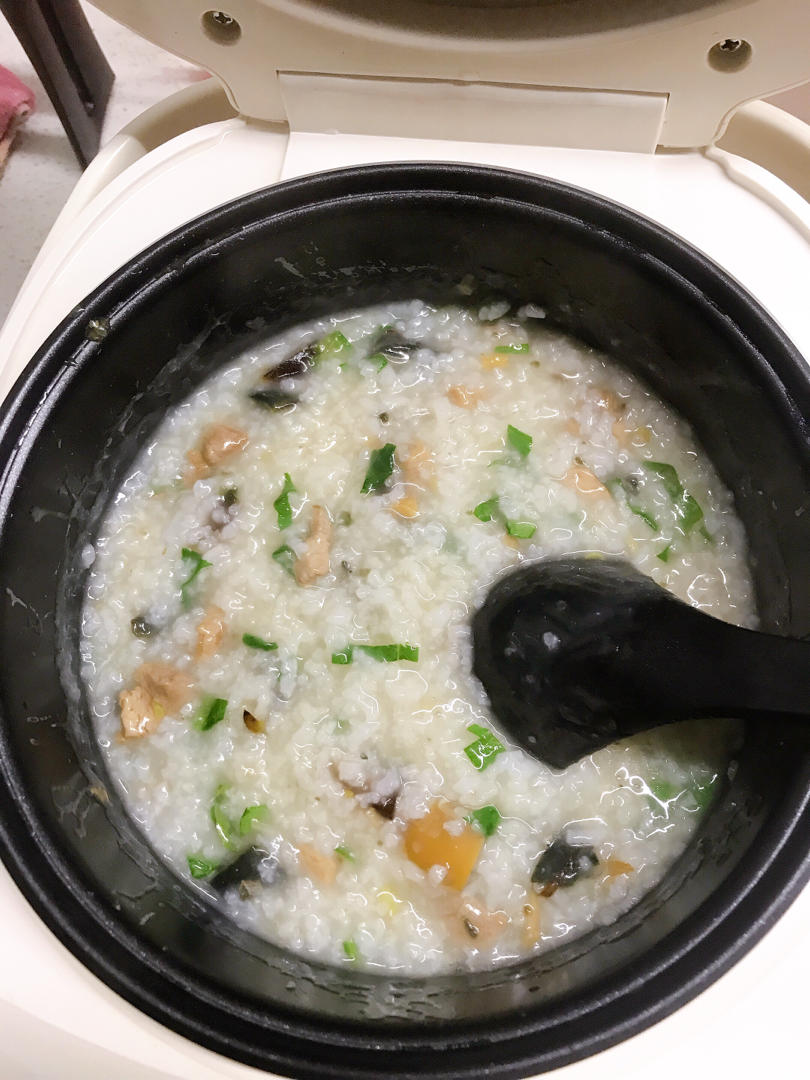 电饭锅煮粥,煮的有些稠了,我爱皮蛋瘦肉粥❤️