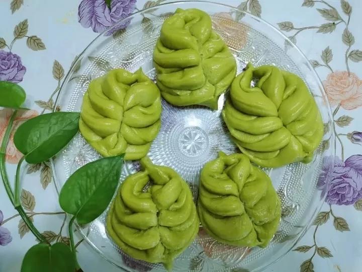 为了不褪色,菠菜榨汁和面时放了一丢丢小苏打。面发好后,揉好醒面20分钟,制作成品时又揉进了一点点油,可能这也是蒸好后面皮...