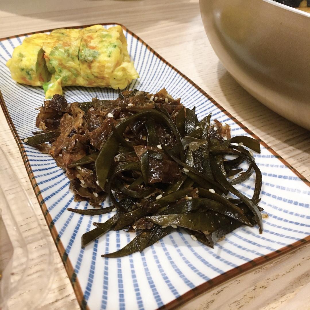 #便当# 下午做了日式高汤,捞出来的材料炒了一份小菜。明天的便当很日式。