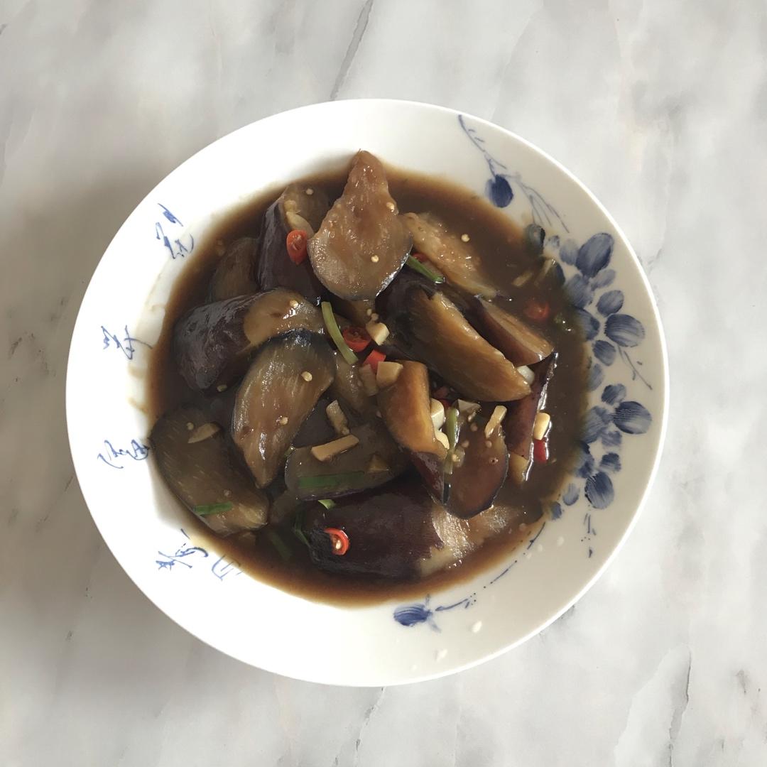 用料:茄子🍆一根、蒜🧄、小米椒、小葱、生抽2勺、老抽一勺、蚝油一勺、盐、淀粉。