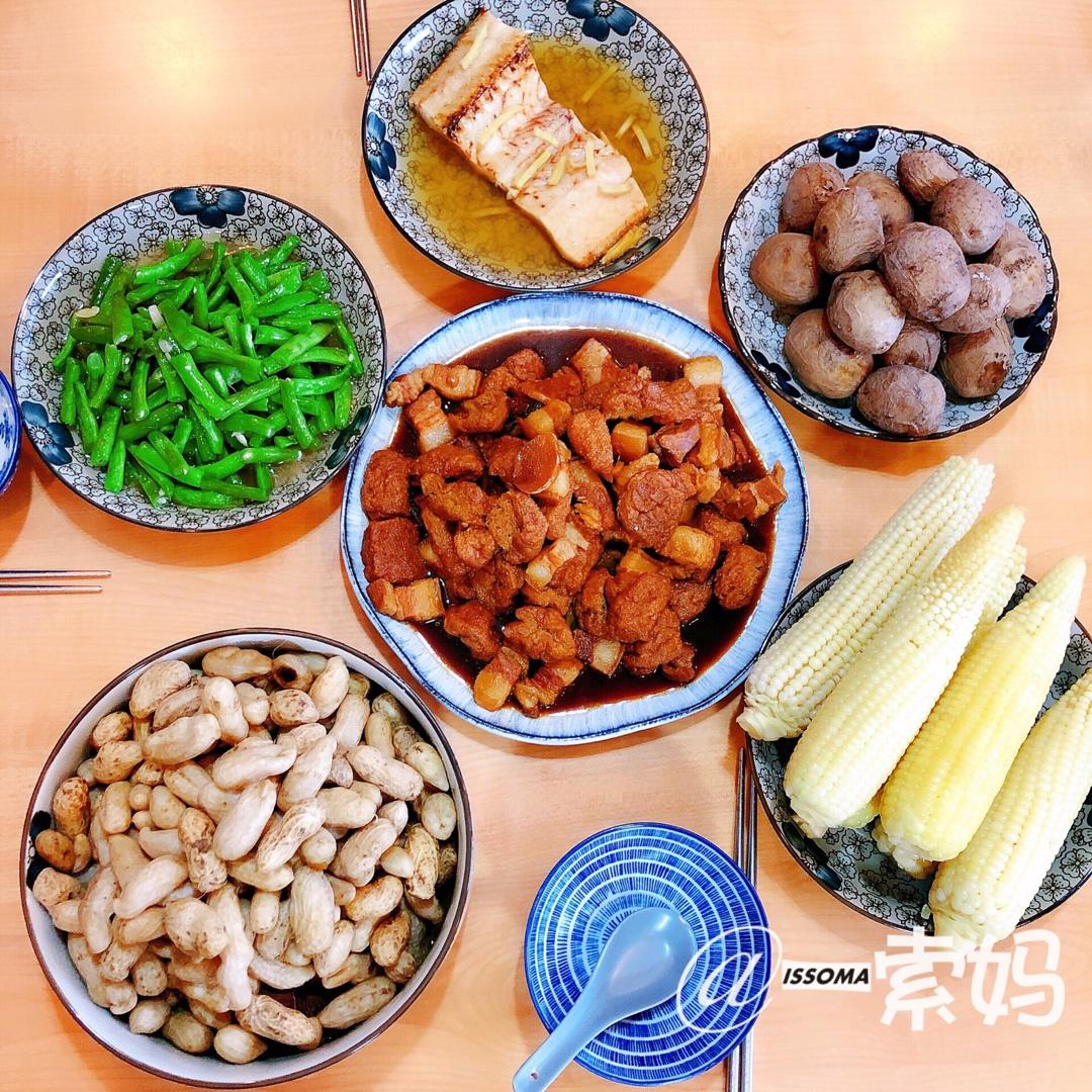 刚上市樟村贝母地花生✖️樟村贝母地烤土豆✖️贝母地玉米✖️油豆腐烤肉✖️蒸鳗鲞✖️贝母地四季豆[捂脸]回趟娘家亲一色的贝...