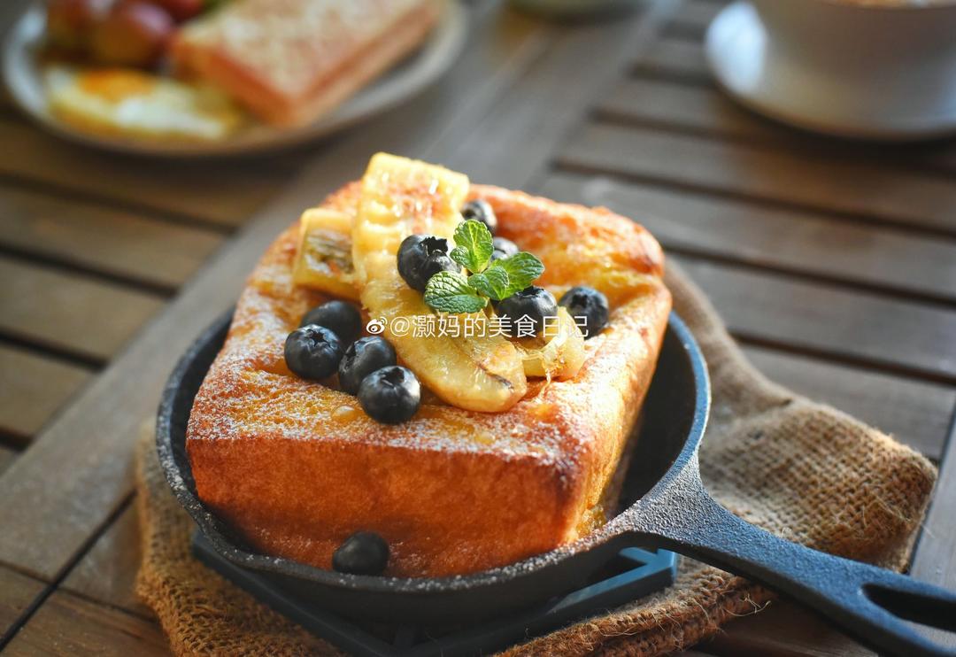 法式厚切吐司+花生酱香蕉三明治+燕麦酸奶杯