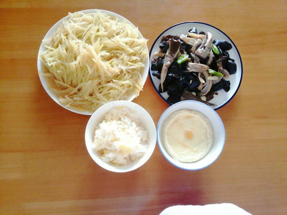 我俩午餐 炒土豆丝 木耳平菇 二米饭…
