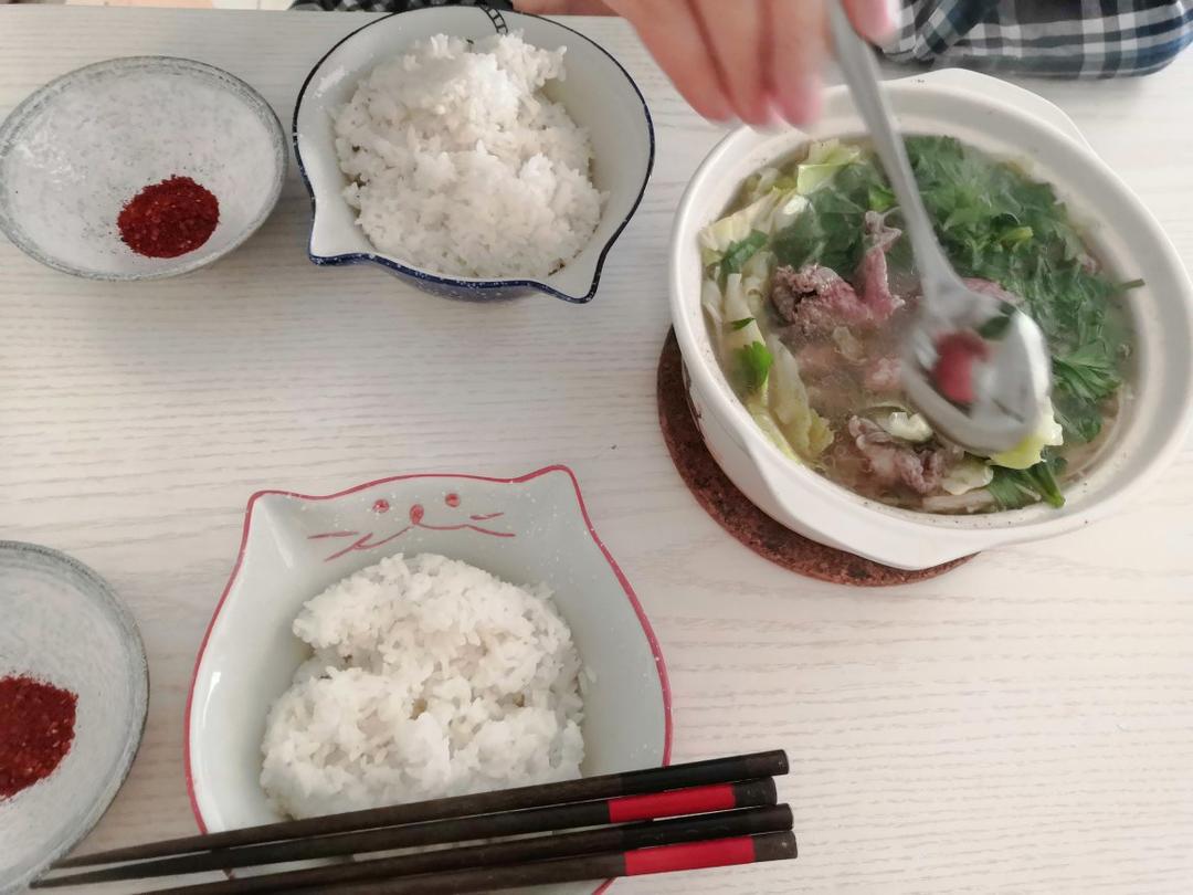 跷脚牛肉,买的料,自己配牛肉 包菜 金针菇 豆腐皮,很下饭