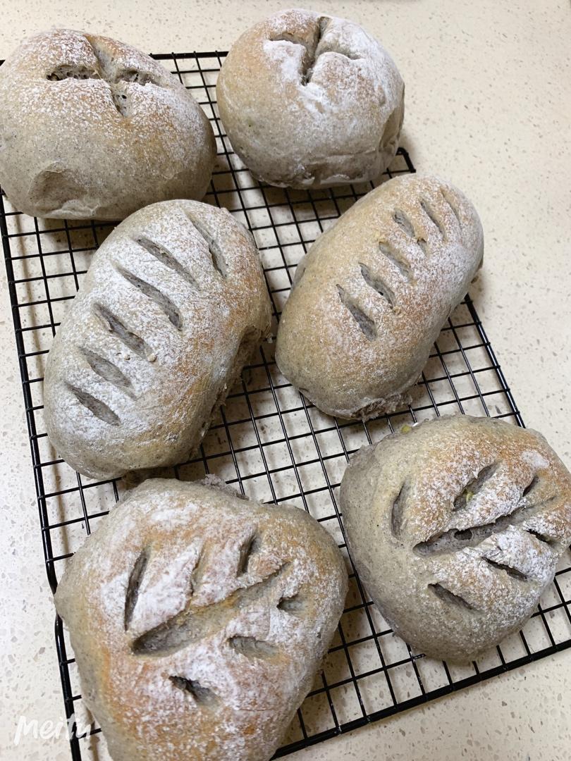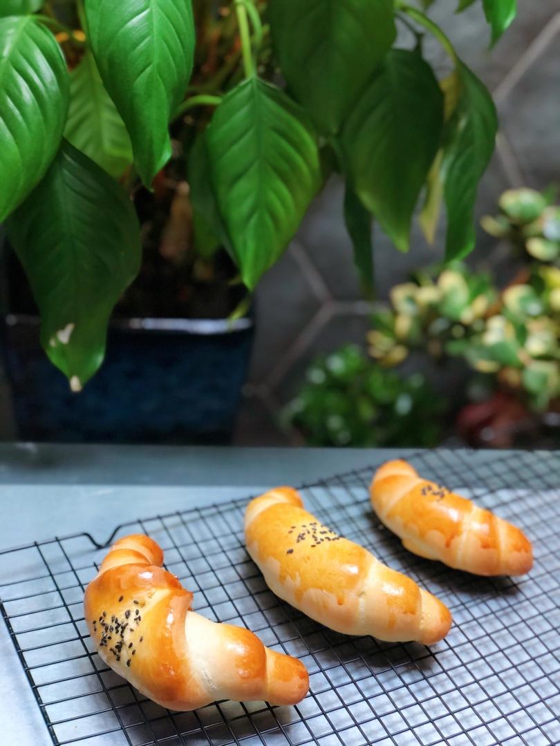 做的核桃芝麻软欧,里面有红豆夹心。用了277g的牛奶代替水,烤箱小,150度25分钟,方子简单好操作。