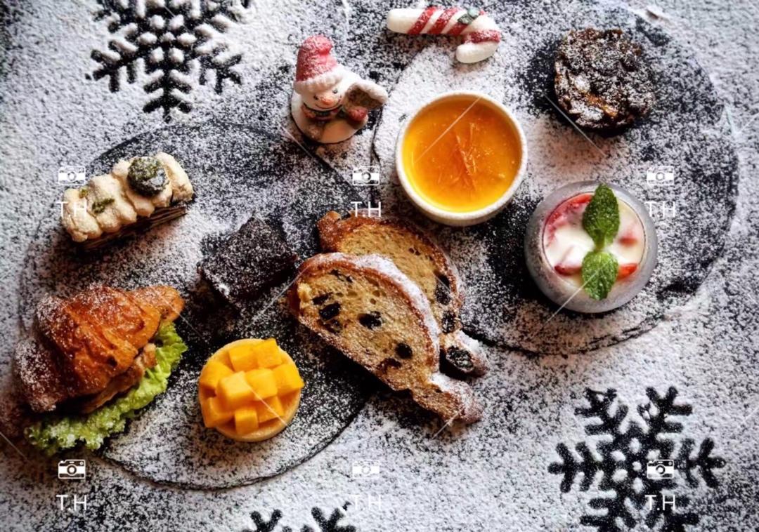 充满仪式感的树根蛋糕、姜汁布丁等精致小点