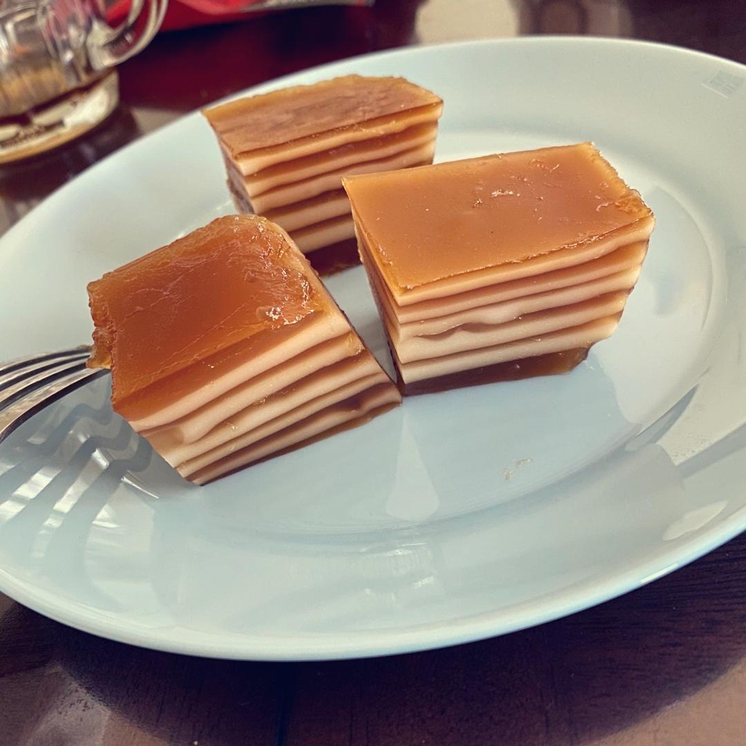 红糖减到60克,已经足够甜我觉得。椰浆那碗忘记加水到500毫升,不过也成功了。很好吃,弹...