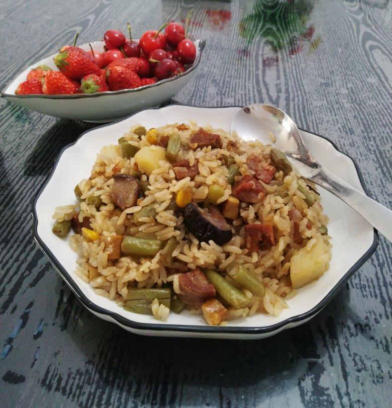今天突然想吃腊肠菜饭,冰箱里翻出冬天灌的香肠。简单快手。