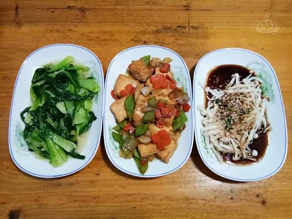 清炒上海青➕酱香豆腐➕炝拌海鲜菇