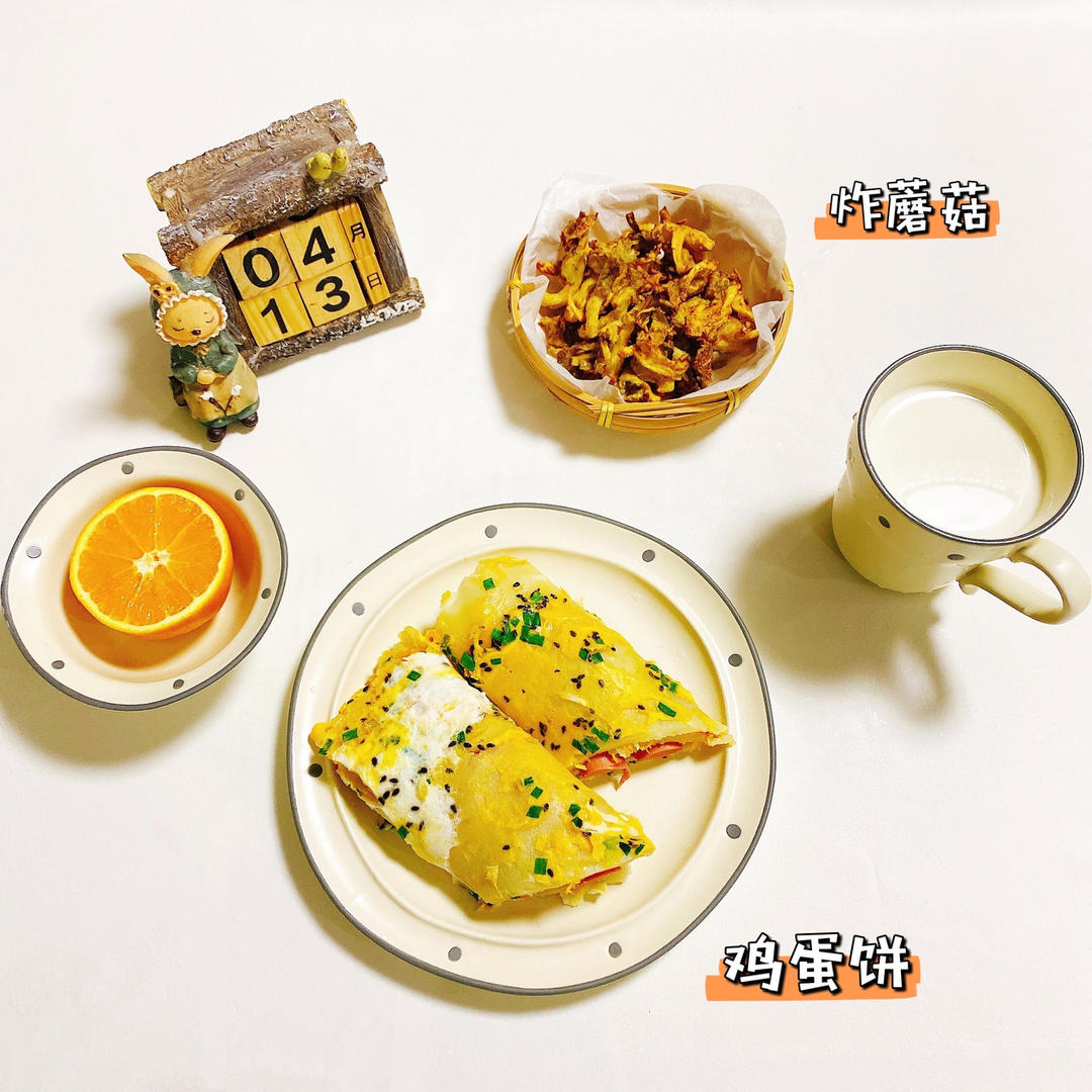 鸡蛋饼+炸蘑菇