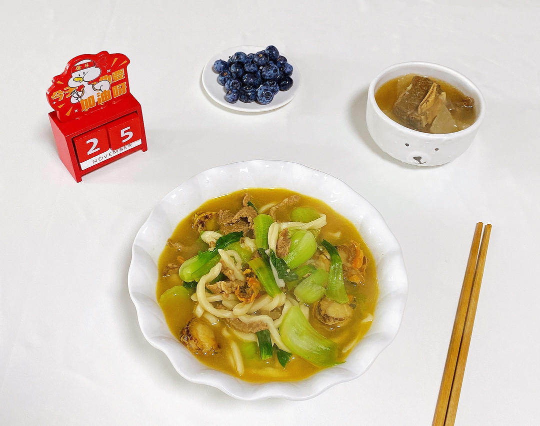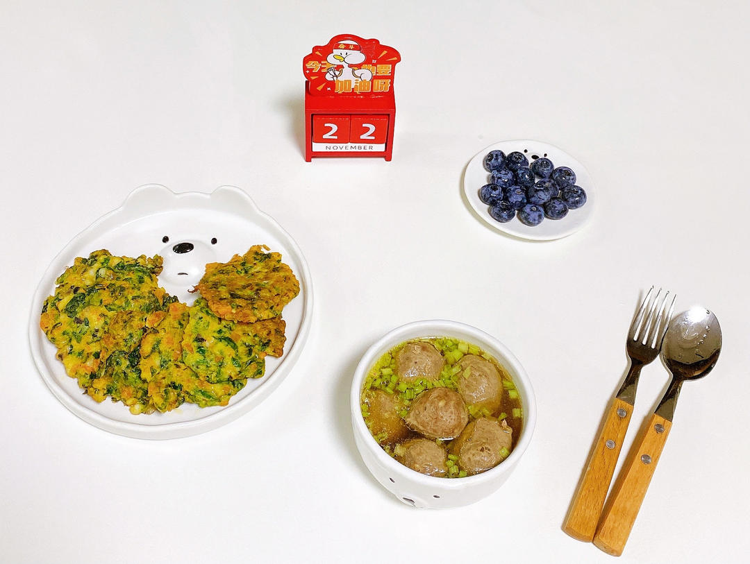 牛肉粉丝汤+菠菜杂蔬饼