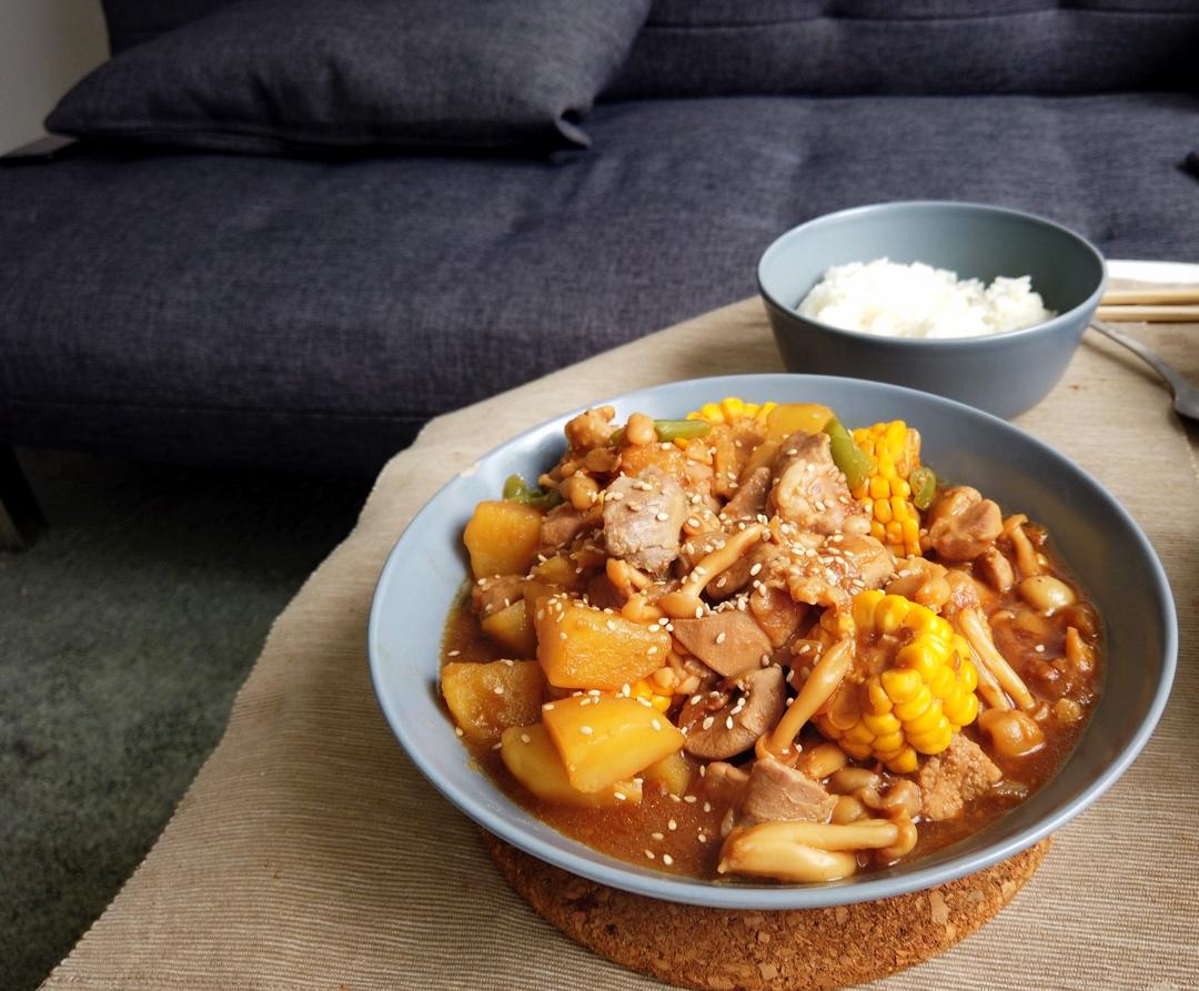 火鸡腿焖锅 加了土豆蟹味菇和玉米