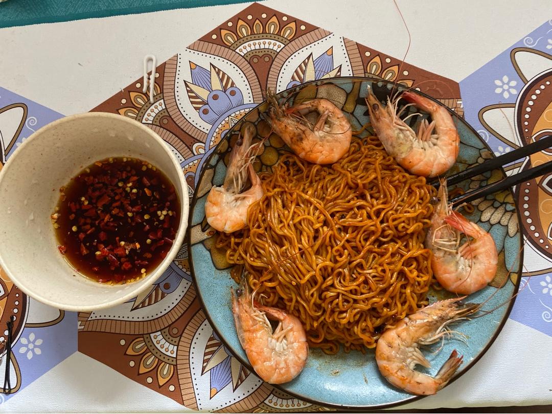 心心念念想吃火鸡面,午餐就它了,蛋白质不能少,就基围虾吧!!!