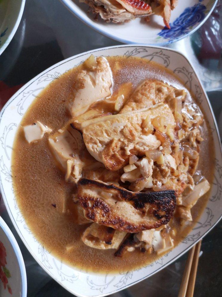 煎豆腐 糖醋肉 鲜虾豆腐汤