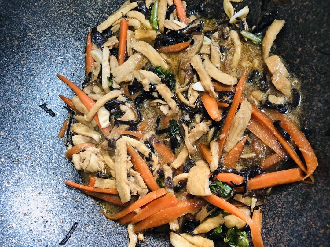 酱油炒饭、木耳凉瓜、鱼柳