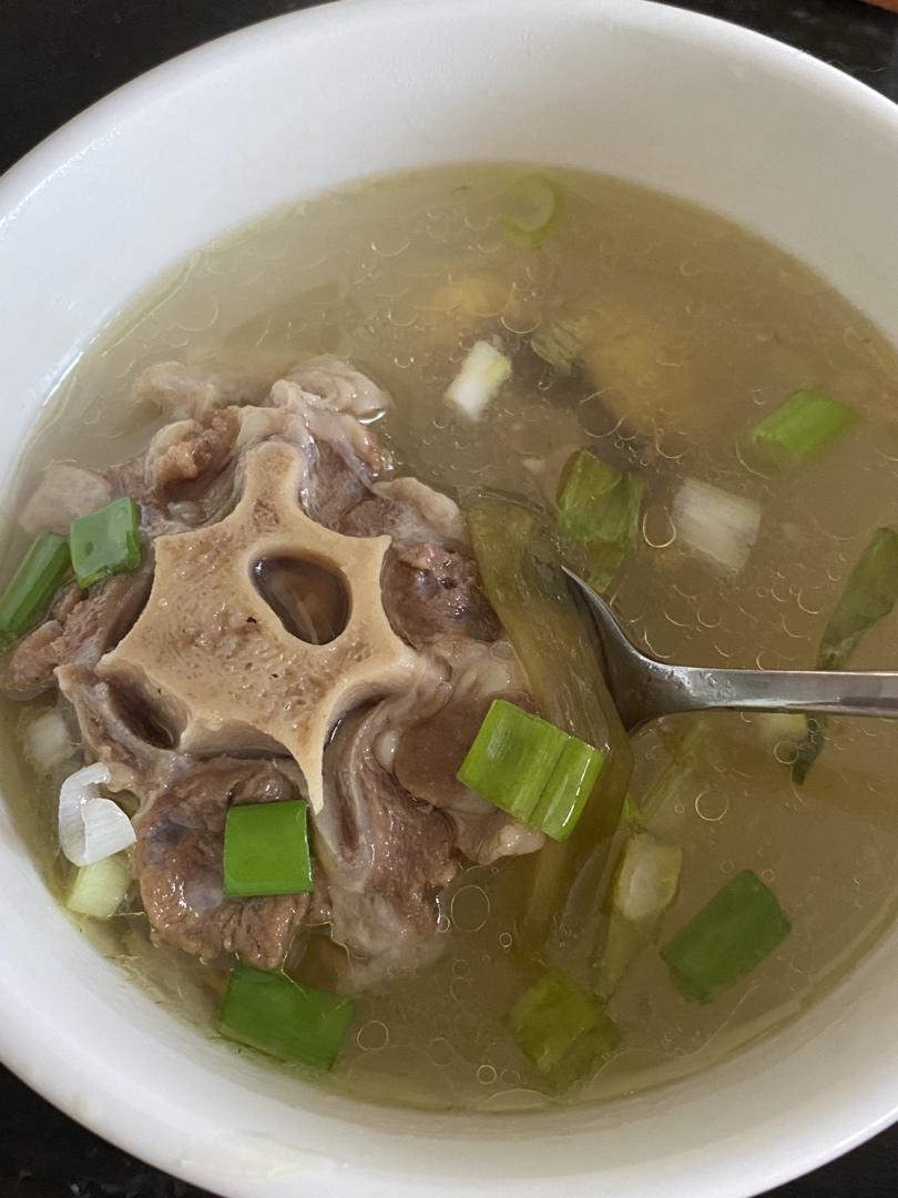 毛豆炒牛肉+裙带菜蛋汤