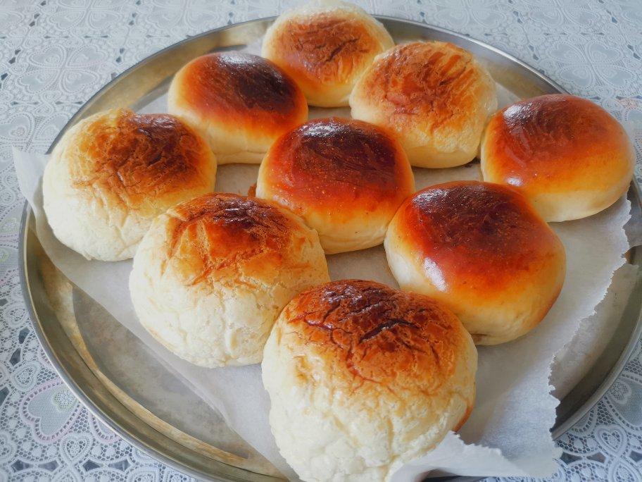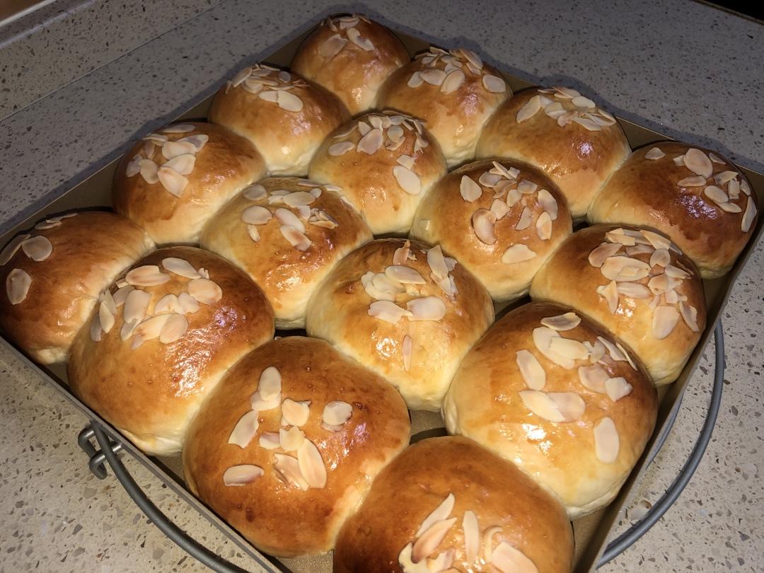 包了豆沙馅和肉松咸蛋黄馅。一次发酵还是很方便的!
