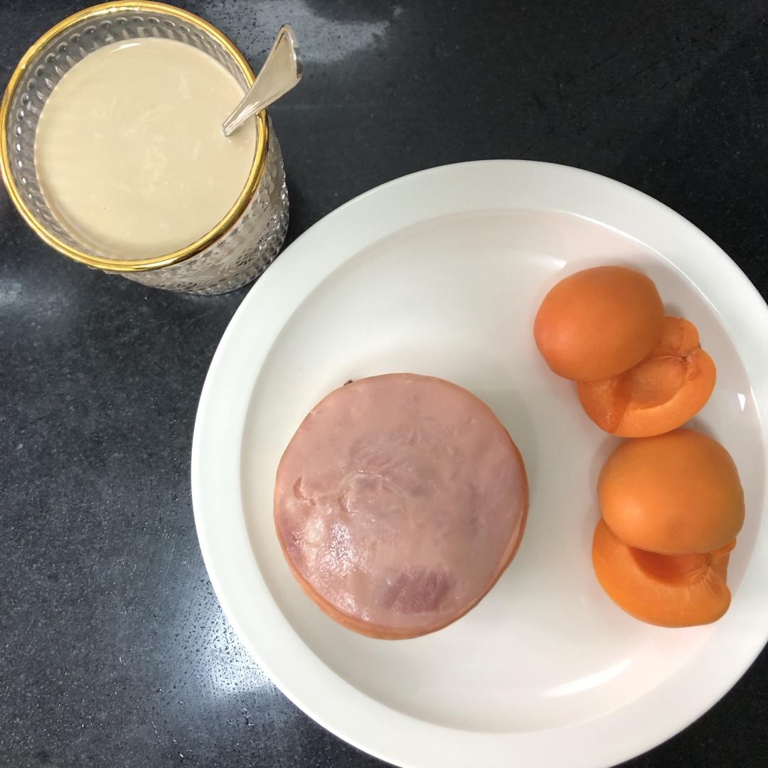一人食:五花肉三明治+杏+奶咖