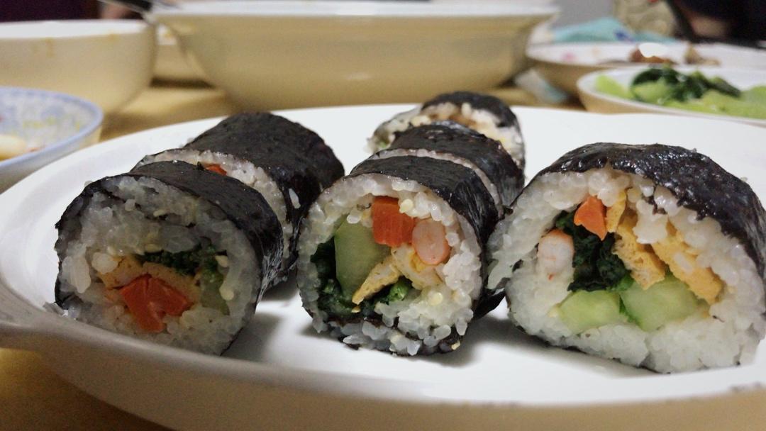用这个方子不错,我糖量减少一些。一量杯米可以做两条的分量,鸡蛋两颗就够,米上撒白芝麻。加了黄瓜半根🥒、捞好的菠菜、胡萝卜...