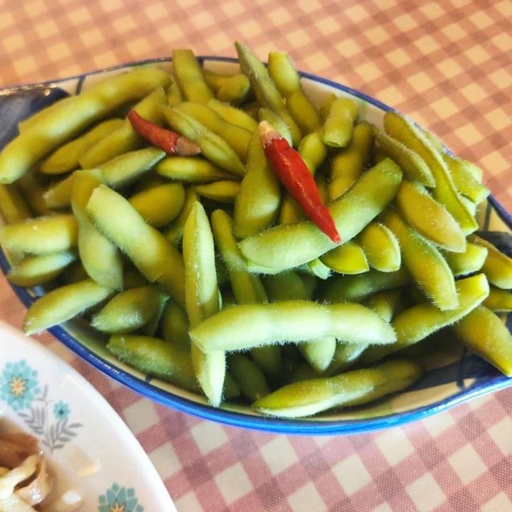 煮毛豆,不能盖锅盖,放八角、辣椒,开锅放盐,不能煮得太烂。