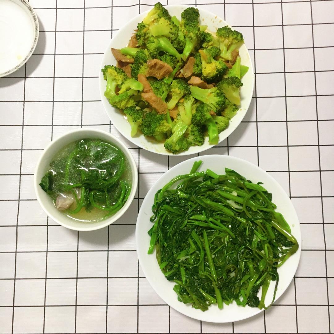 清一色吃青菜的晚餐
