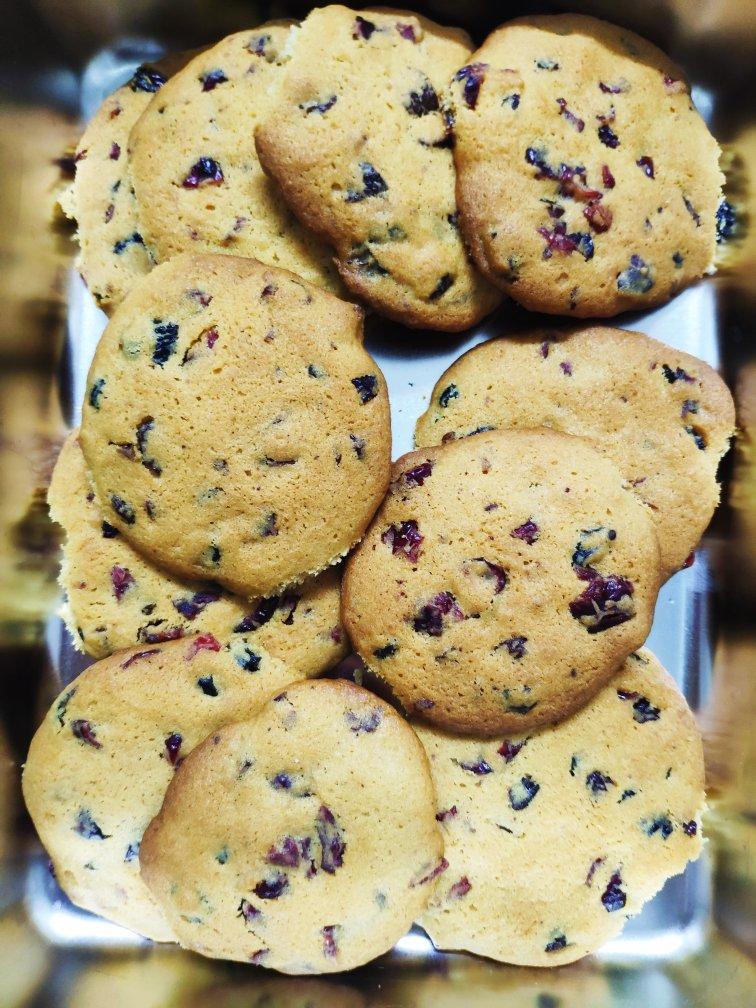 把巧克力换成葡萄干加蔓越莓,10克面粉加了10克奶粉,好吃!!!!太香了!