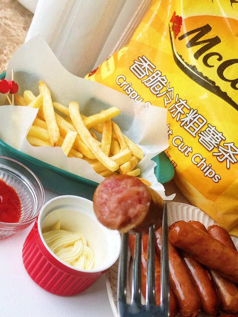 香脆的薯条和烤肠搭配成小食组合,完美!麦肯薯条我用烤箱烤的也很脆很好吃