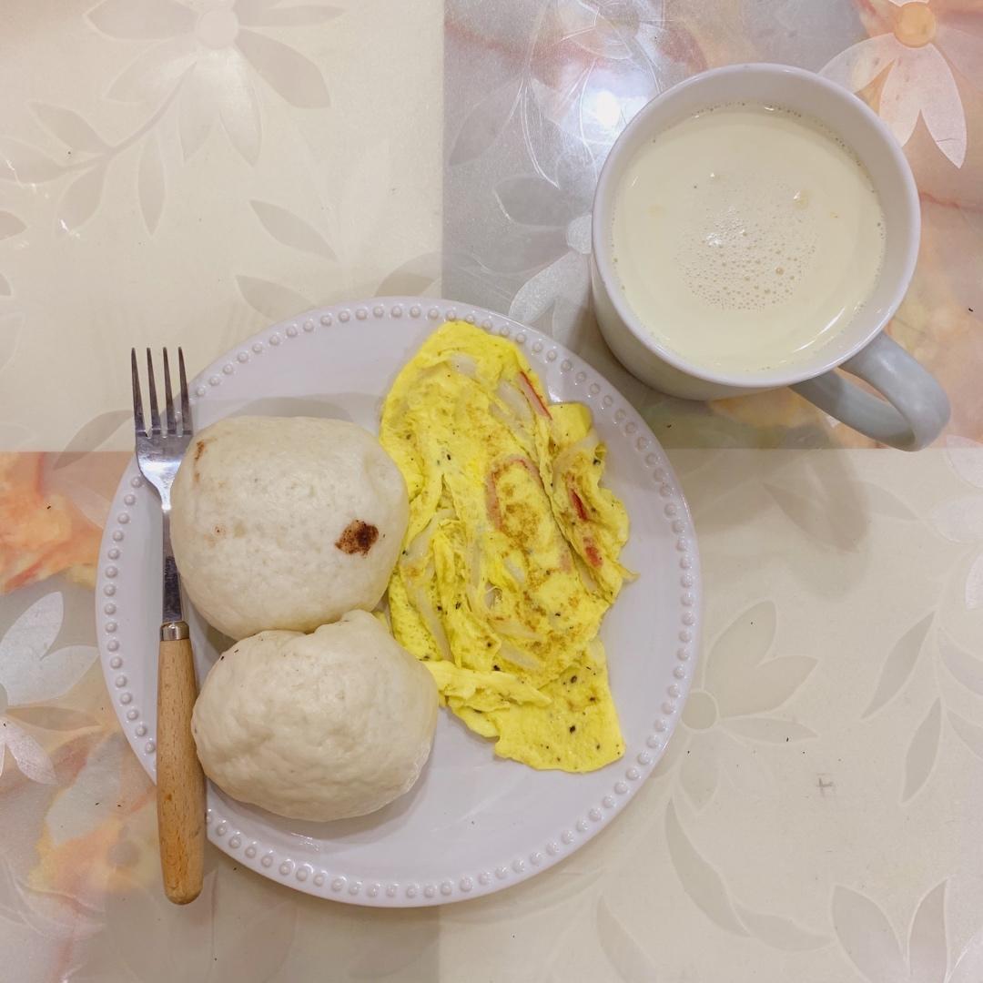 妈妈牌豆沙包&蟹柳煎蛋&豆浆☀️
