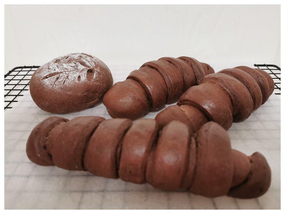 时隔两三年再做软欧 替换50克黑米粉 加了8克可可粉 馅料加了黑加仑干 发得太大圆胖子们相互之间都粘连上了 烤时满屋子的...