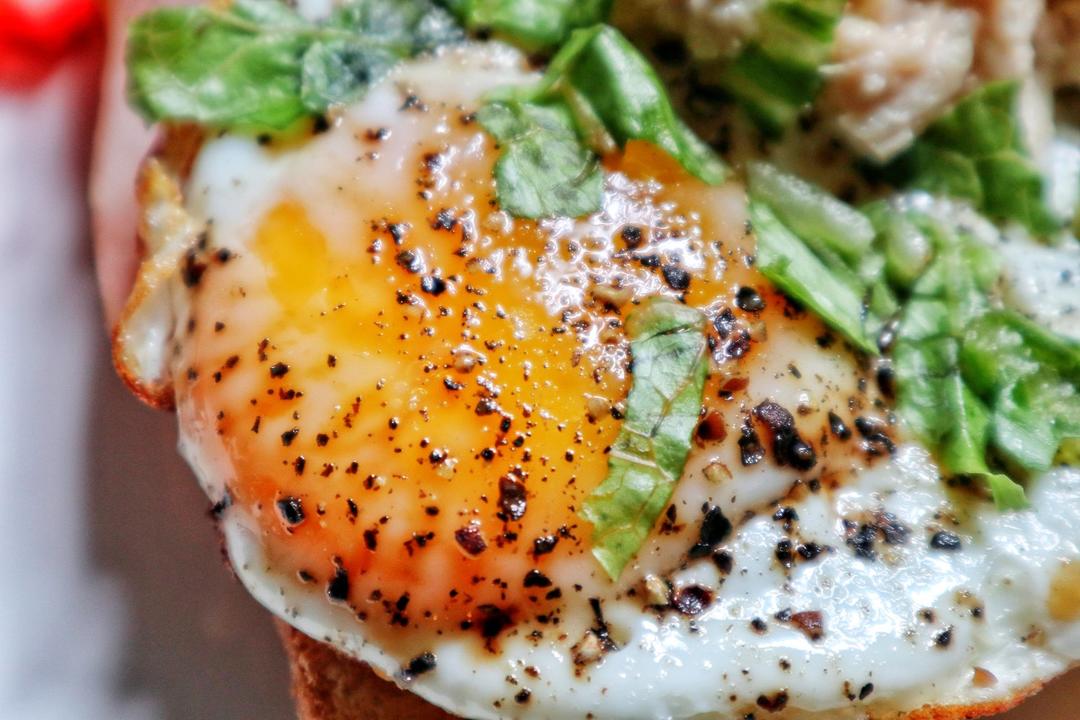 溏心蛋是靠焖出来的,小火煎一面,然后盖上锅盖焖一会,撒上盐和黑胡椒就好啦!#早餐•2020年7...