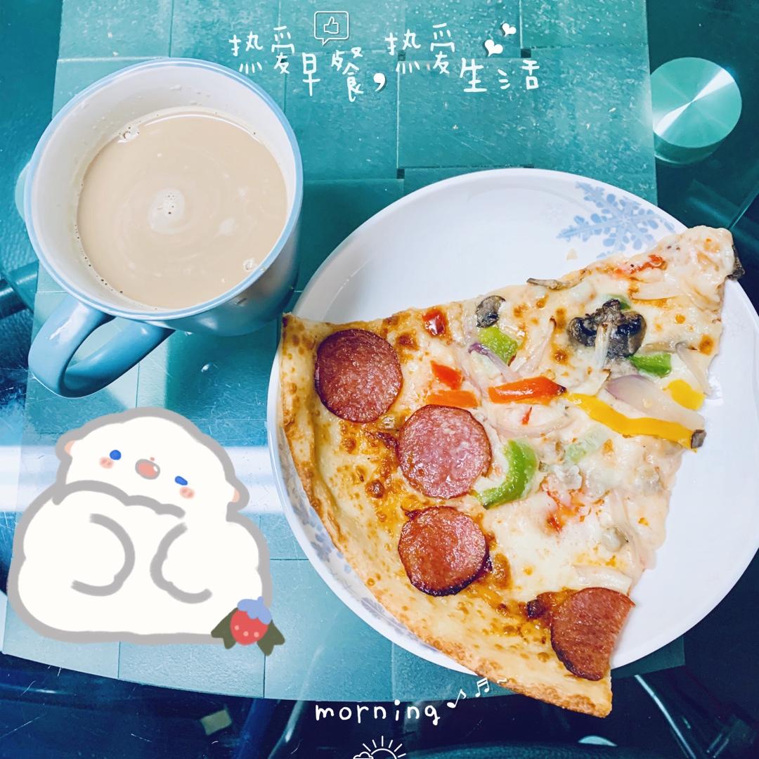 披萨🍕配脱脂奶拿铁☕️