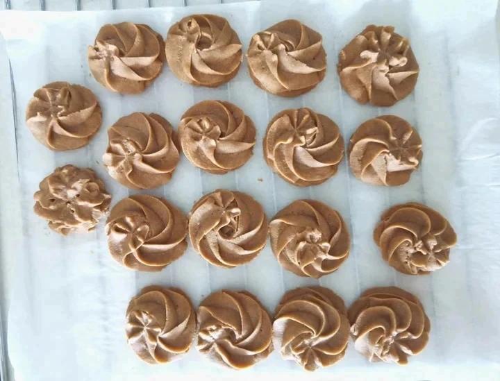 加了可可粉,只放了20g砂糖,惠尔通2D裱花嘴。美的烤箱倒数第二层烤,下火140℃上火150℃,烤了38分钟。这个配方非...
