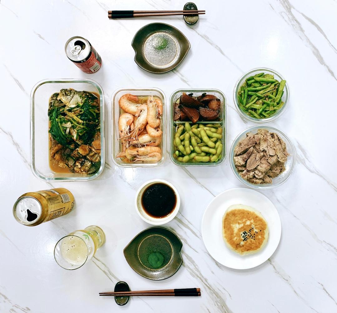 红烧鲫鱼🐟水煮虾🦐烧毛豆🌱红烧白萝卜✨