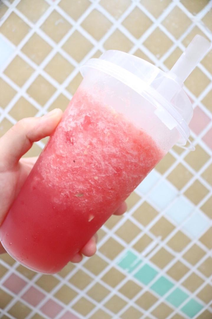 在热到爆的临界点给自己来一杯冰凉的西瓜冰沙 简直不要太满足