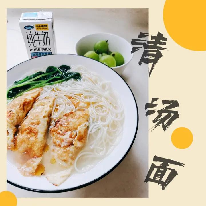 快手早餐系列~跟老公一人一碗面,给他加了三个蛋饺,我的是青菜清汤面,两个人都是碳水脑袋,就爱吃面!#早餐•2023年9月...