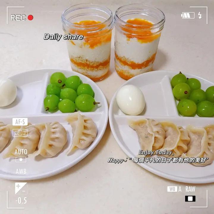 快手早餐系列~最近爱上隔夜燕麦,自己做的无糖酸奶+昨天剩的南瓜,无敌好吃,周末包了萝卜丝猪肉水饺,味道也很赞#早餐•20...