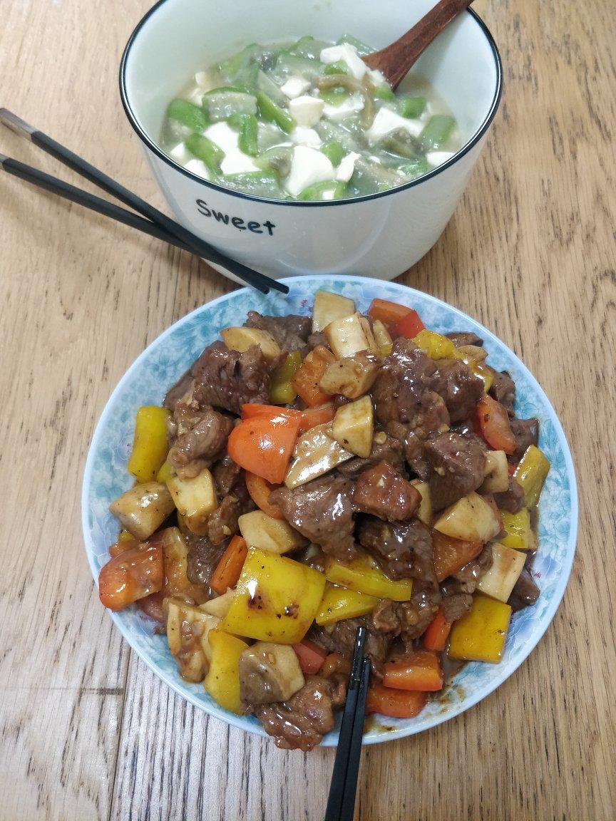 买的牛排边角料,化冻切成粒以后放生抽、淀粉和食用油腌了大概半个多小时,然后按照楼主的步骤...