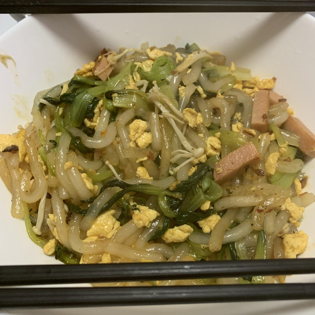 煮了点白玉菇和油白菜进去,也很好吃哦
